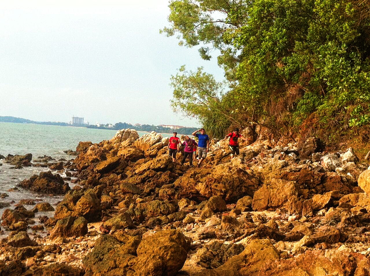 Sekitar pukul 5.00 sampai di hadapan pintu masuk Hutan Rekreasi Tanjung Tuan, memang bersebelahan sungguh dengan Ilham. FYI kami tak ikut laluan biasa untuk naik ke Bukit Batu Putih. Kebanyakan orang akan masuk melalui pintu utama ke Hutan Rekreasi untuk terus ke sana. Perlu bayar RM2 (Tak salah) dan laluan berbukit biasa sahaja dengan jalan yang sudah di tar. Sudah tentu kami nak ikut laluan yang lebih mencabar dan best dari biasa huhuhuhu... ikut tepi pantai. Terus ambik belah kanan sekali dan akan nampak denai naik ke atas.